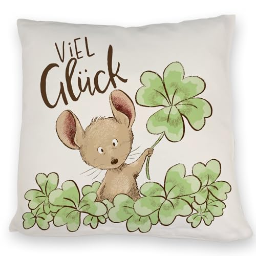 Das Kissen mit Maus Motiv ist ein Hingucker auf jedem Sofa. Es zeigt eine entzückende Maus im Kleefeld, die stolz ein vierblättriges Kleeblatt hochhält. Dieses kuschelige Kissen ist nicht demgegenüber eine bequeme Stütze, sondern auch ein Deko-Element, das jeder Couch einen Hauch von Charme verleiht.