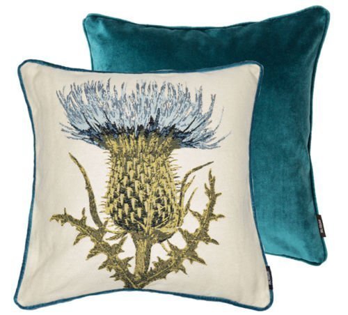 Diese wunderschön gestickten Motive stellen Blumen, Farne und Diesteln dar. Die Abseite dieser Kissen ist aus plüschweichem Samt. Diese exklusiven Zierkissen können Sie mit unseren Heimtextilien aus glänzendem oder mattem Samt umleiten.