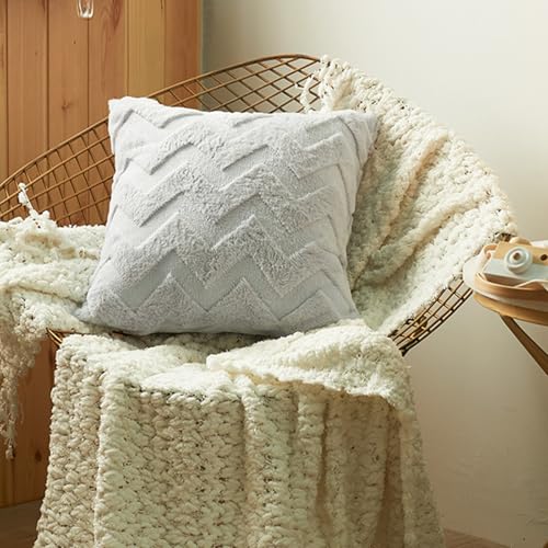 Melldrry 2er Set Wolle Kissenbezüge Dekokissen Polyster Sofakissen Weich Couchkissen Kissenbezug Zierkissenbezug Versteckter Reißverschluss für Wohnzimmer Schlafzimmer Grau 40x40cm