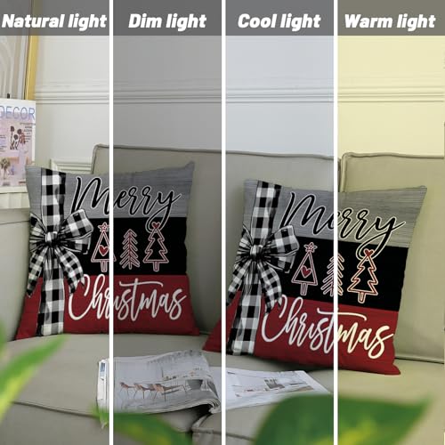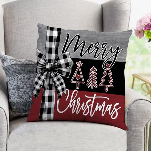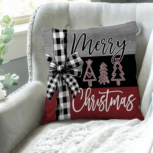Merry Christmas Dekokissen, rot und schwarz, kariert, Winterurlaub, Heimdekoration an Stelle Sofa und Wohnzimmer, 45,7 x 45,7 cm