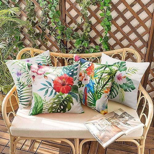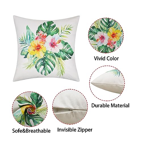 Merrycolor Abstrakt Kissenbezug 45×45 cm 4er Set, Draussen Leinen Kissenhülle Grün Blume Kopfkissenbezug Sofakissen Dekokissen für Schlafzimmer (45x 45cm, Grün)