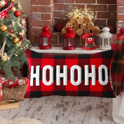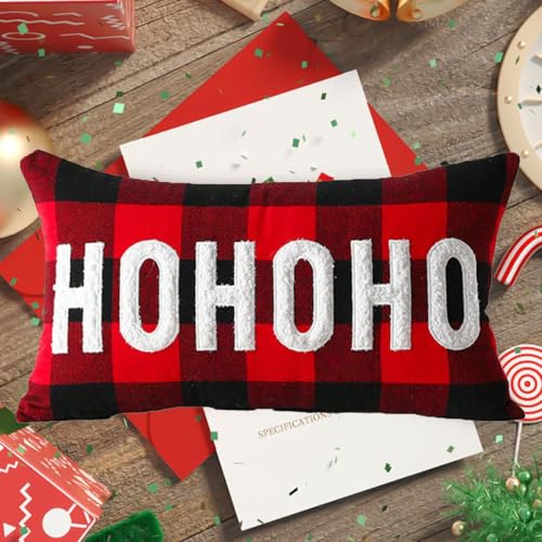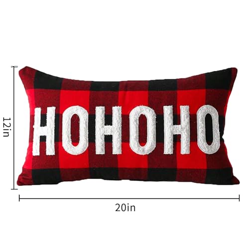 MFGNEH Hohoho Weihnachtsdekoration, Überwurf-Kissenbezüge, 30,5 x 50,8 cm, Büffelkaro, kariert, Bauernhaus, Heimdekoration, Dekokissen für Sofa, Couch