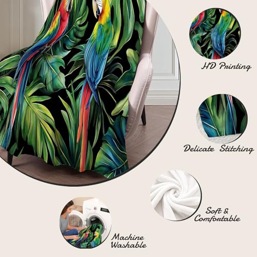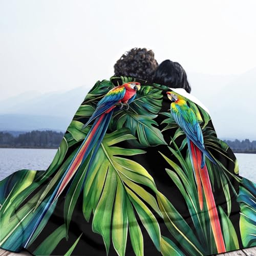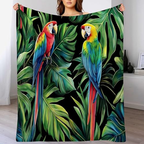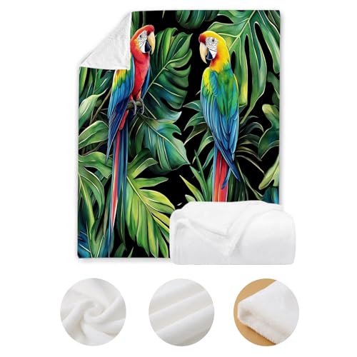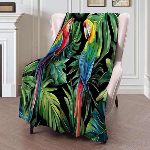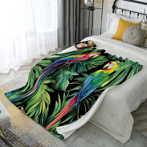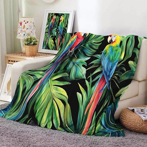 【Angenehm warm】: Wir haben unsere klassische Flanell-Fleecedecke verbessert, damit sie noch weicher gemütlich und hautsympathisch. jetzt mit verbesserter Mikrofaser. Fassung mit Blätter Papagei muster auf Oberseite, Rückseite in Weiß. Die exquisiten Farben verleihen dieser Decke ein eleganteres und eleganteres Aussehen und verleihen Ihrem Zimmer ein schickes Ambiente.