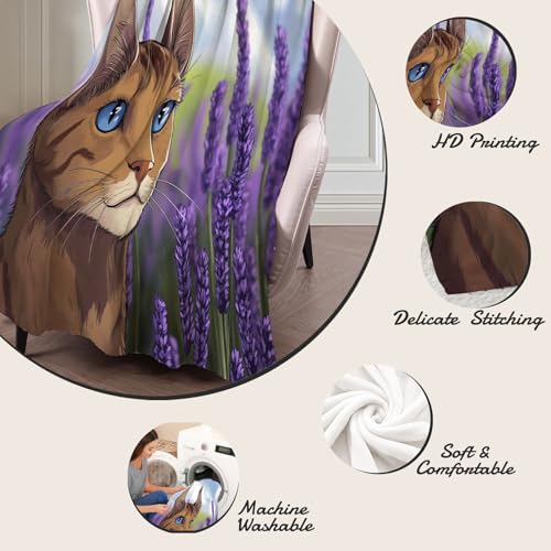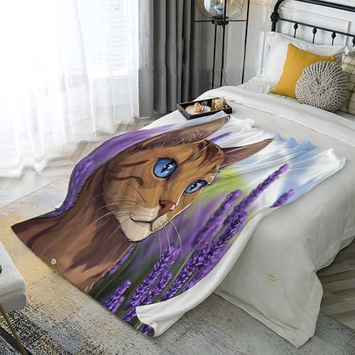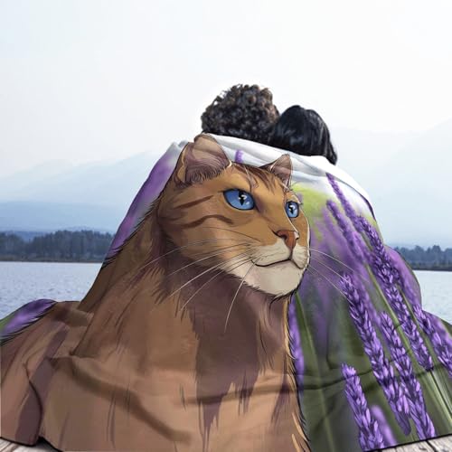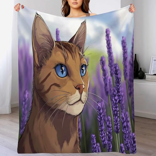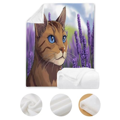 【Angenehm warm】: Wir haben unsere klassische Flanell-Fleecedecke verbessert, damit sie noch weicher gemütlich und hautsympathisch. jetzt mit verbesserter Mikrofaser. Edition mit Blumenfeld Braune Katze muster auf Oberseite, Rückseite in Weiß. Die exquisiten Farben verleihen dieser Decke ein eleganteres und eleganteres Aussehen und verleihen Ihrem Zimmer ein schickes Ambiente.