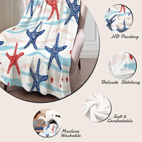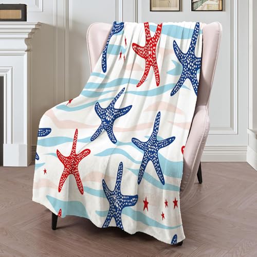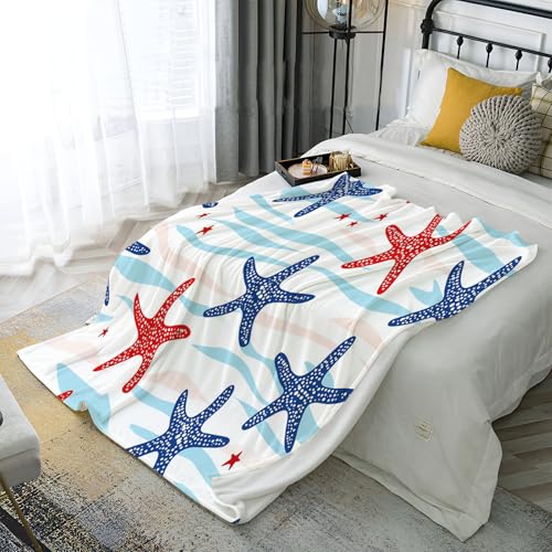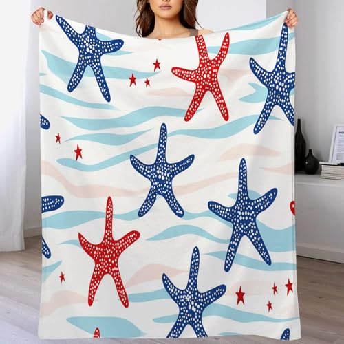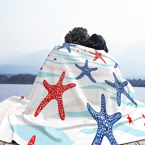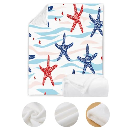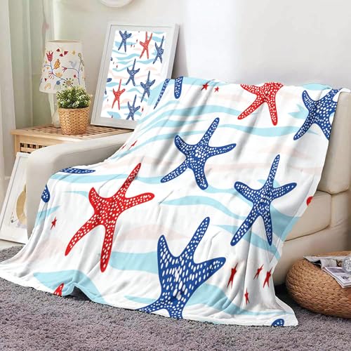 【Angenehm warm】: Wir haben unsere klassische Flanell-Fleecedecke verbessert, damit sie noch weicher gemütlich und hautsympathisch. jetzt mit verbesserter Mikrofaser. Ausgabe mit Cartoon Seestern muster auf Oberseite, Rückseite in Weiß. Die exquisiten Farben verleihen dieser Decke ein eleganteres und eleganteres Aussehen und verleihen Ihrem Zimmer ein schickes Ambiente.