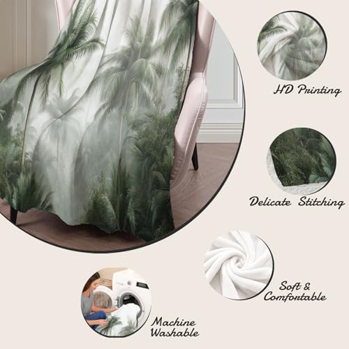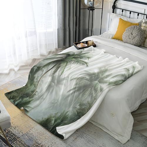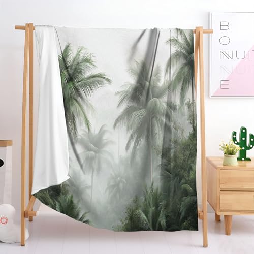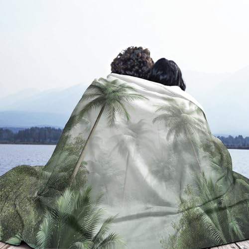 MIATCENRT Decke Flauschig, Palme Dschungel Winterdecke Wärmedecke Fleecedecke, 3D Landschaft Pflanzen Drucken Reisedecke für Kinder, Mädchen, Erwachsene, Sofadecke 130x150cm Bettwaren