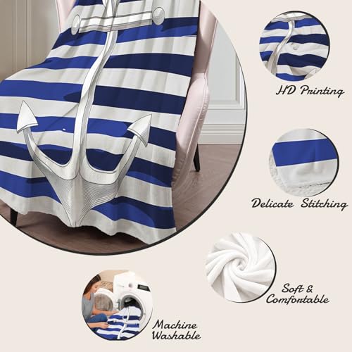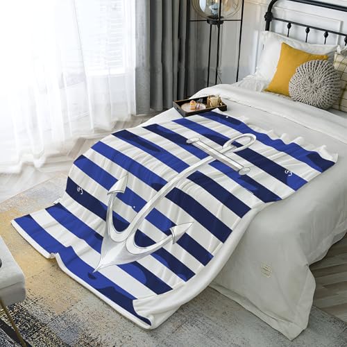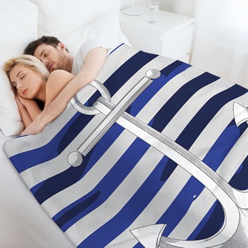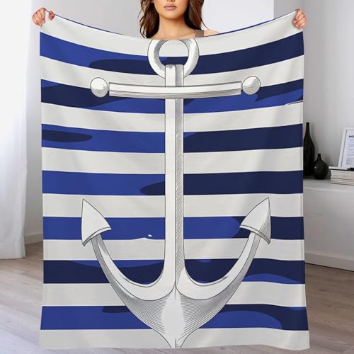 MIATCENRT Decke Streifen Anker Kuscheldecke Flauschig, Winterdecke Wärmedecke Fleecedecke Schlafdecke, 3D Vintage Drucken Reisedecke für Kinder, Erwachsene, Sofadecke 130x150cm