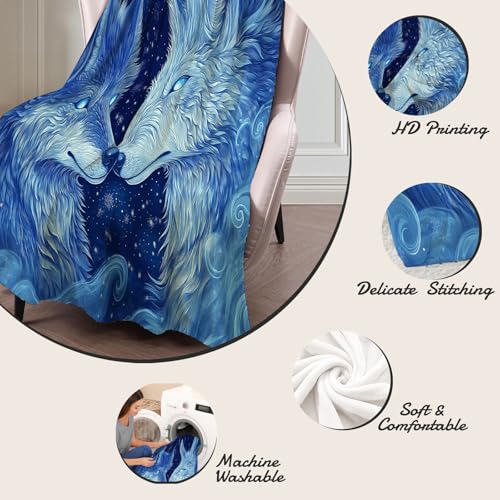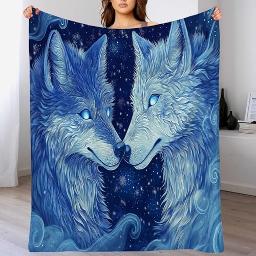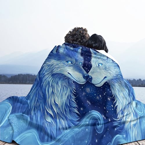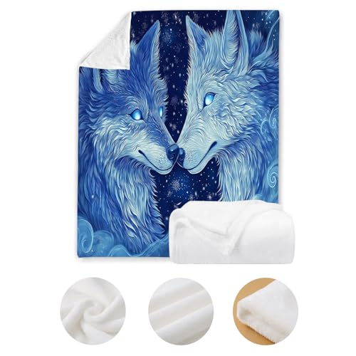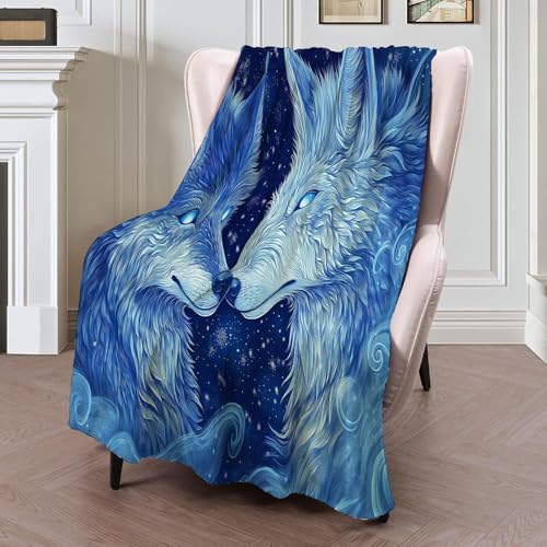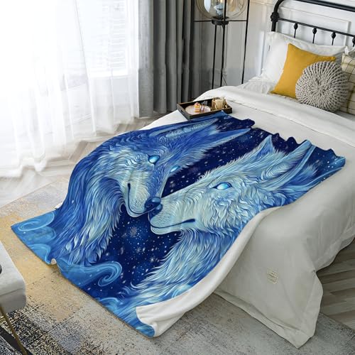 【Angenehm warm】: Wir haben unsere klassische Flanell-Fleecedecke verbessert, damit sie noch weicher gemütlich und hautsympathisch. jetzt mit verbesserter Mikrofaser. Auflage mit Eiskristall Wolf muster auf Oberseite, Rückseite in Weiß. Die exquisiten Farben verleihen dieser Decke ein eleganteres und eleganteres Aussehen und verleihen Ihrem Zimmer ein schickes Ambiente.