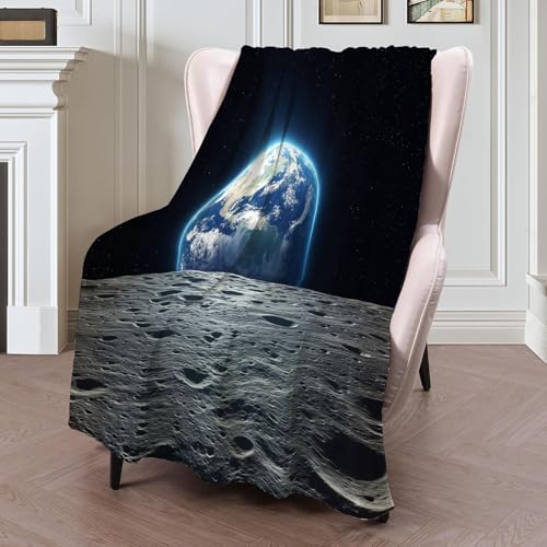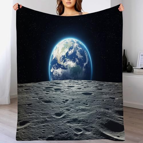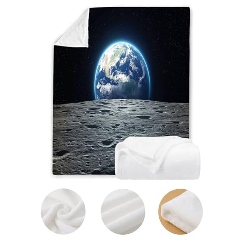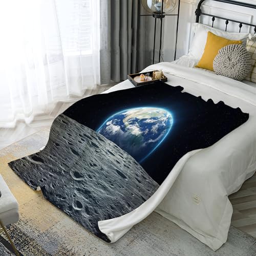 【Angenehm warm】: Wir haben unsere klassische Flanell-Fleecedecke verbessert, damit sie noch weicher gemütlich und hautsympathisch. jetzt mit verbesserter Mikrofaser. Beule mit Erde Mond Krater muster auf Oberseite, Rückseite in Weiß. Die exquisiten Farben verleihen dieser Decke ein eleganteres und eleganteres Aussehen und verleihen Ihrem Zimmer ein schickes Ambiente.
