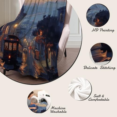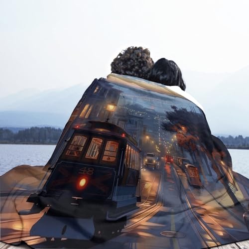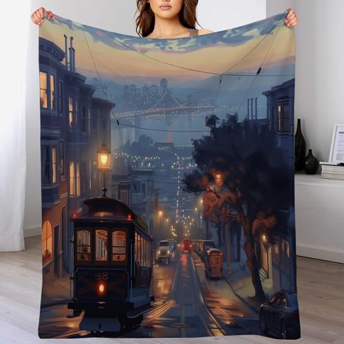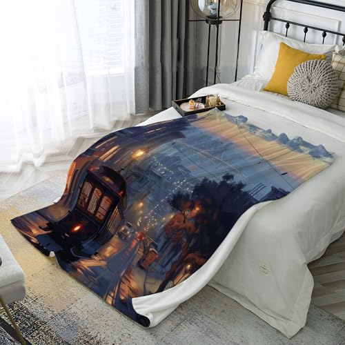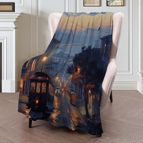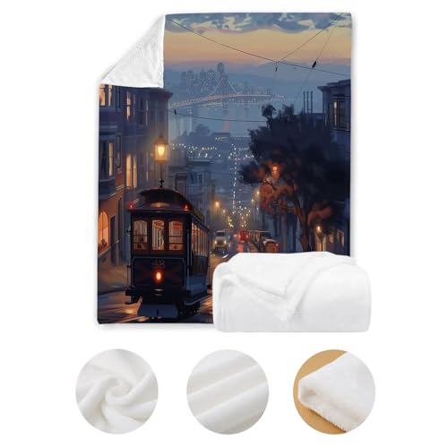 【Angenehm warm】: Wir haben unsere klassische Flanell-Fleecedecke verbessert, damit sie noch weicher gemütlich und hautsympathisch. jetzt mit verbesserter Mikrofaser. Edition mit Straße Seilbahn muster auf Oberseite, Rückseite in Weiß. Die exquisiten Farben verleihen dieser Decke ein eleganteres und eleganteres Aussehen und verleihen Ihrem Zimmer ein schickes Ambiente.