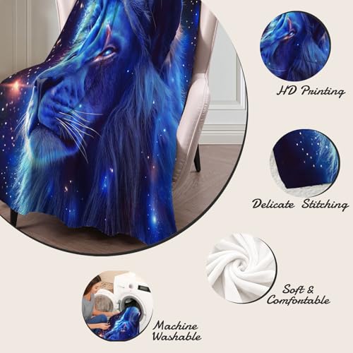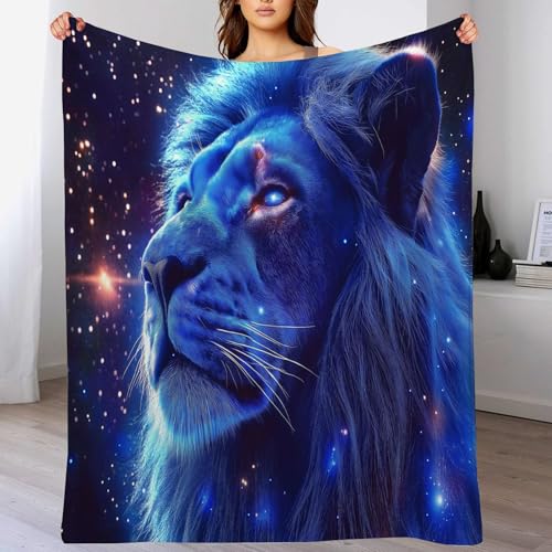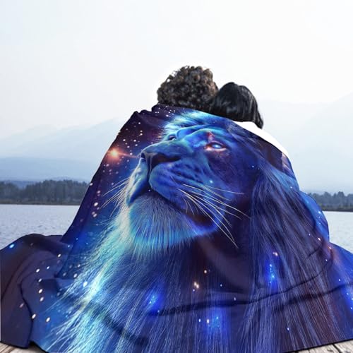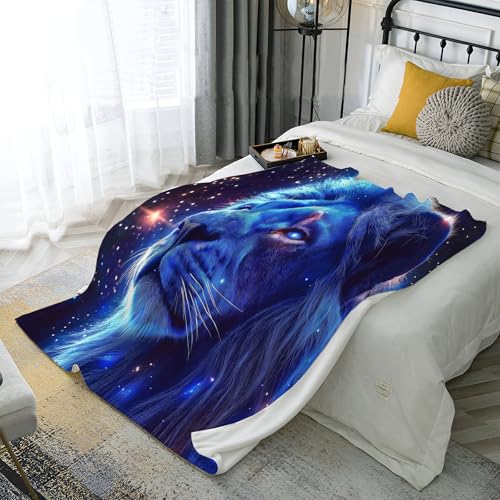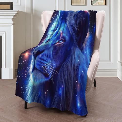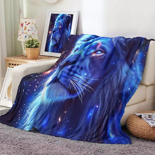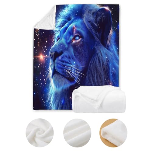 【Angenehm warm】: Wir haben unsere klassische Flanell-Fleecedecke verbessert, damit sie noch weicher gemütlich und hautsympathisch. jetzt mit verbesserter Mikrofaser. Vertiefung mit Weltraum Löwe muster auf Oberseite, Rückseite in Weiß. Die exquisiten Farben verleihen dieser Decke ein eleganteres und eleganteres Aussehen und verleihen Ihrem Zimmer ein schickes Ambiente.