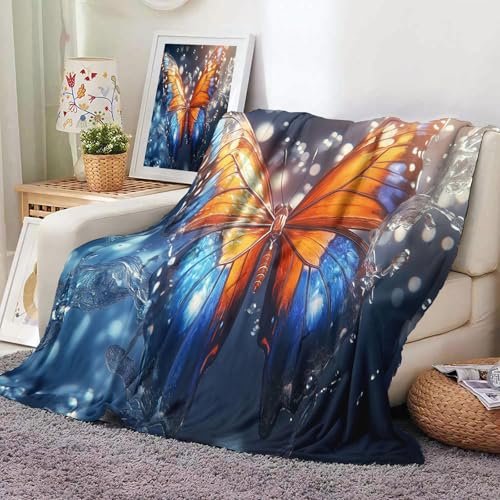 MIATCENRT Glitzer Löwe Abstrakt Galaxiengitter Bedruckt Flanell Decken, Kinderdecke 3D Druck Flauschige Plüsch Decke, Blau Wohndecke Fleece Tagesdecke Decke TV Decken für Bett Sofa 130x150cm