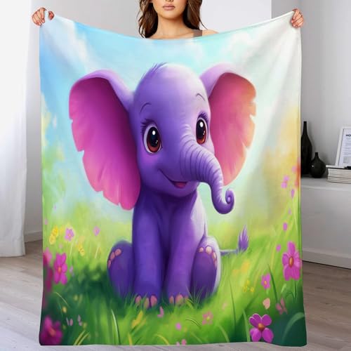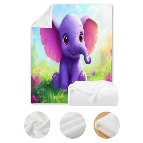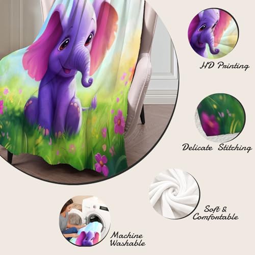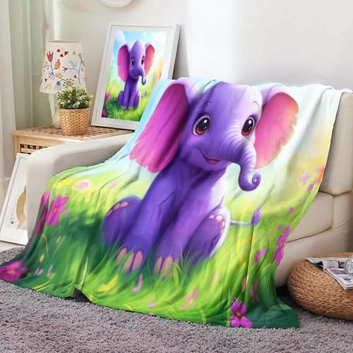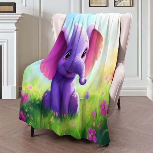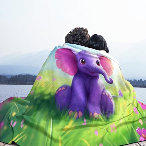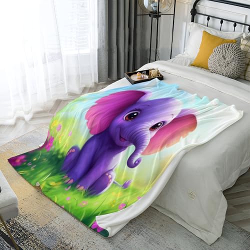 【Angenehm warm】: Wir haben unsere klassische Flanell-Fleecedecke verbessert, damit sie noch weicher gemütlich und hautsympathisch. jetzt mit verbesserter Mikrofaser. Beule mit Gras Lila Elefantenbaby muster auf Oberseite, Rückseite in Weiß. Die exquisiten Farben verleihen dieser Decke ein eleganteres und eleganteres Aussehen und verleihen Ihrem Zimmer ein schickes Ambiente.