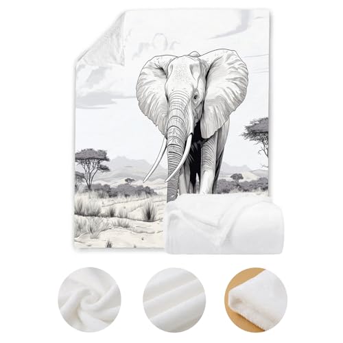 【Angenehm warm】: Wir haben unsere klassische Flanell-Fleecedecke verbessert, damit sie noch weicher gemütlich und hautsympathisch. jetzt mit verbesserter Mikrofaser. Druck mit Grasland Elefant muster auf Oberseite, Rückseite in Weiß. Die exquisiten Farben verleihen dieser Decke ein eleganteres und eleganteres Aussehen und verleihen Ihrem Zimmer ein schickes Ambiente.