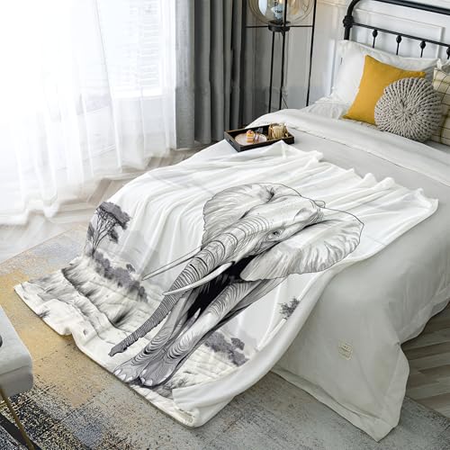 【Angenehm warm】: Wir haben unsere klassische Flanell-Fleecedecke verbessert, damit sie noch weicher gemütlich und hautsympathisch. jetzt mit verbesserter Mikrofaser. Fassung mit Grasland Elefant muster auf Oberseite, Rückseite in Weiß. Die exquisiten Farben verleihen dieser Decke ein eleganteres und eleganteres Aussehen und verleihen Ihrem Zimmer ein schickes Ambiente.