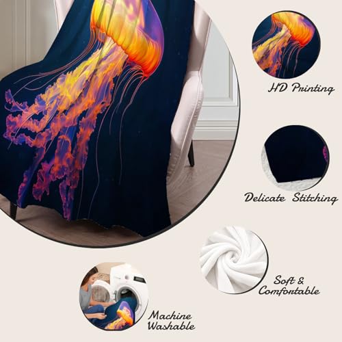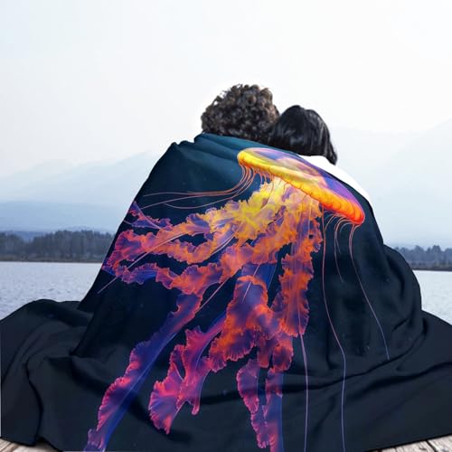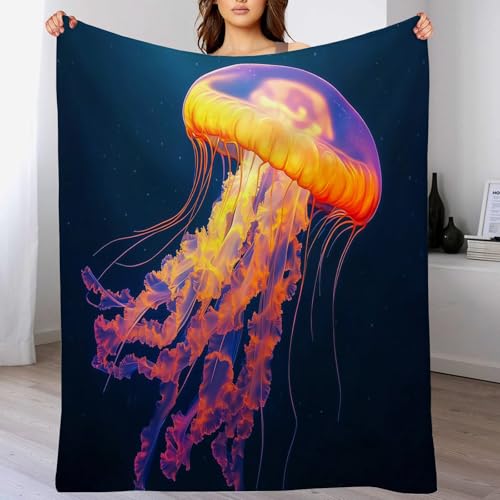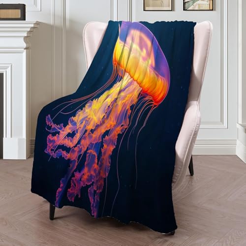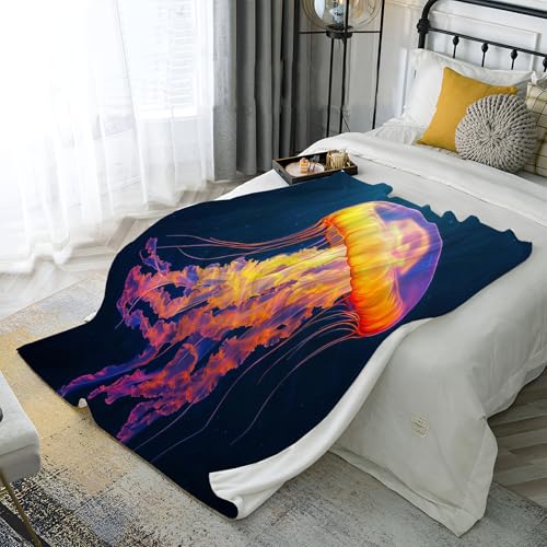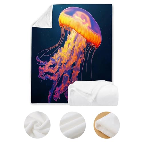 【Angenehm warm】: Wir haben unsere klassische Flanell-Fleecedecke verbessert, damit sie noch weicher gemütlich und hautsympathisch. jetzt mit verbesserter Mikrofaser. Vertiefung mit Meer Qualle muster auf Oberseite, Rückseite in Weiß. Die exquisiten Farben verleihen dieser Decke ein eleganteres und eleganteres Aussehen und verleihen Ihrem Zimmer ein schickes Ambiente.