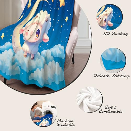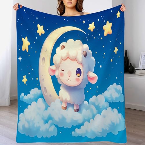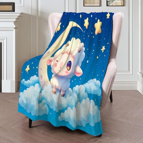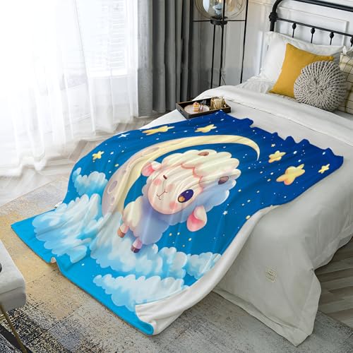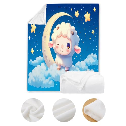 【Angenehm warm】: Wir haben unsere klassische Flanell-Fleecedecke verbessert, damit sie noch weicher gemütlich und hautsympathisch. jetzt mit verbesserter Mikrofaser. Reproduktion mit Mond Lamm muster auf Oberseite, Rückseite in Weiß. Die exquisiten Farben verleihen dieser Decke ein eleganteres und eleganteres Aussehen und verleihen Ihrem Zimmer ein schickes Ambiente.