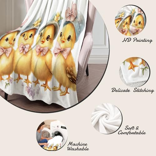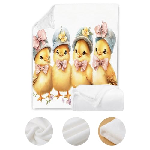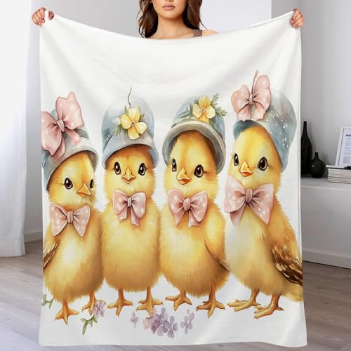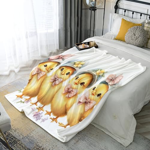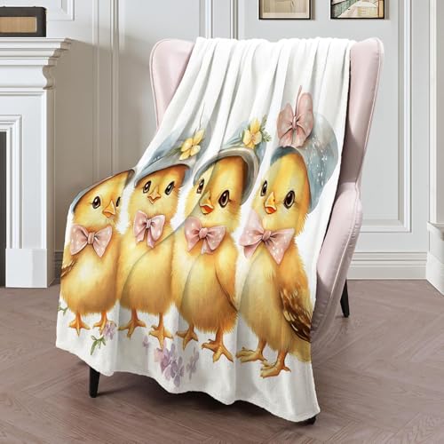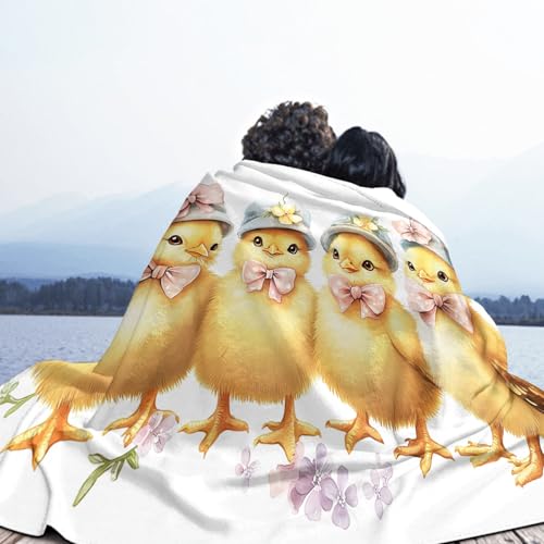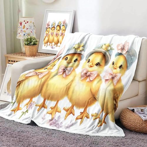 MIATCENRT Mütze Küken Bedruckt Flanell Decken, Kinderdecke 3D Druck Aquarell Süß Flauschige Plüsch Decke, Weiß Wohndecke Fleece Tagesdecke Decke TV Decken für Bett Sofa 130x150cm