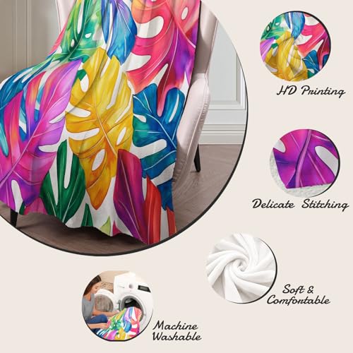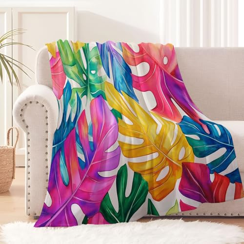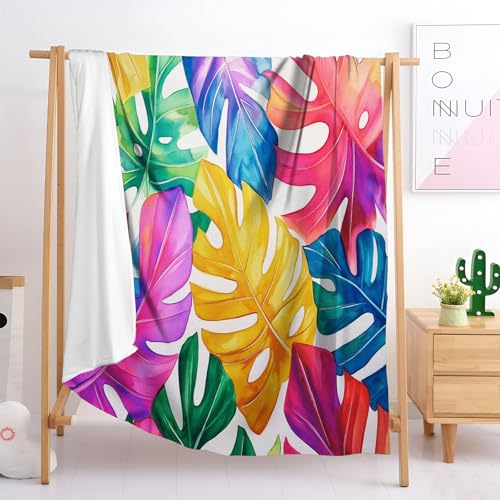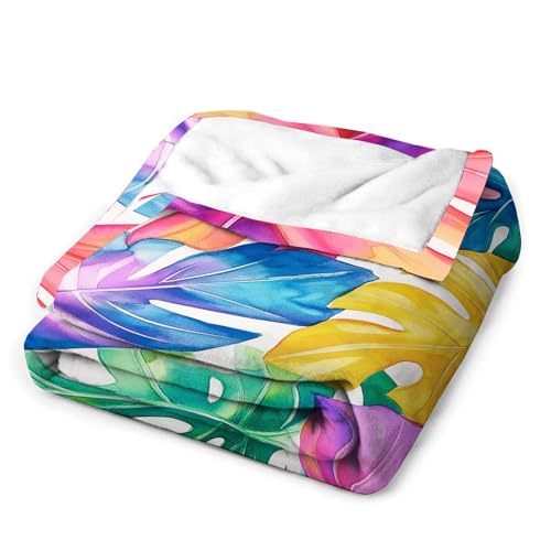 【Angenehm warm】: Wir haben unsere klassische Flanell-Fleecedecke verbessert, damit sie noch weicher gemütlich und hautsympathisch. jetzt mit verbesserter Mikrofaser. Ausgabe mit 3D Regenbogen Blätter muster auf Oberseite, Rückseite in Weiß. Die exquisiten Farben verleihen dieser Decke ein eleganteres und eleganteres Aussehen und verleihen Ihrem Zimmer ein schickes Ambiente.