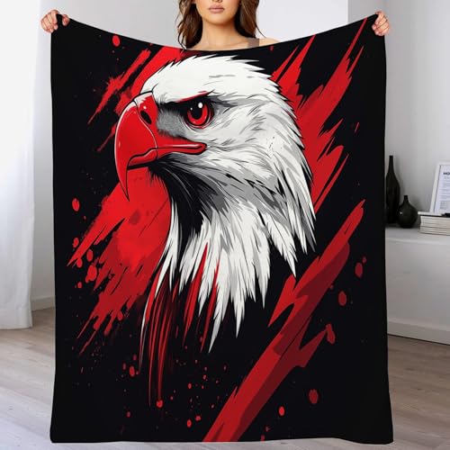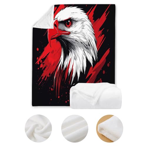 【Angenehm warm】: Wir haben unsere klassische Flanell-Fleecedecke verbessert, damit sie noch weicher gemütlich und hautsympathisch. jetzt mit verbesserter Mikrofaser. Abdruck mit Rot Und Weiß Adler muster auf Oberseite, Rückseite in Weiß. Die exquisiten Farben verleihen dieser Decke ein eleganteres und eleganteres Aussehen und verleihen Ihrem Zimmer ein schickes Ambiente.