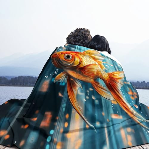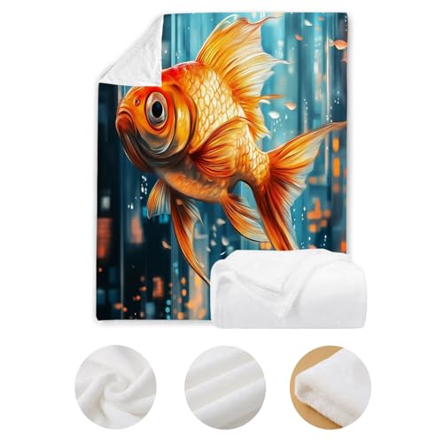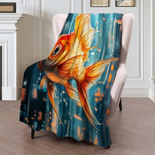 【Angenehm warm】: Wir haben unsere klassische Flanell-Fleecedecke verbessert, damit sie noch weicher gemütlich und hautsympathisch. jetzt mit verbesserter Mikrofaser. Beule mit Stadt Goldfisch muster auf Oberseite, Rückseite in Weiß. Die exquisiten Farben verleihen dieser Decke ein eleganteres und eleganteres Aussehen und verleihen Ihrem Zimmer ein schickes Ambiente.