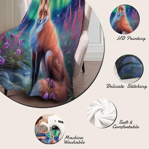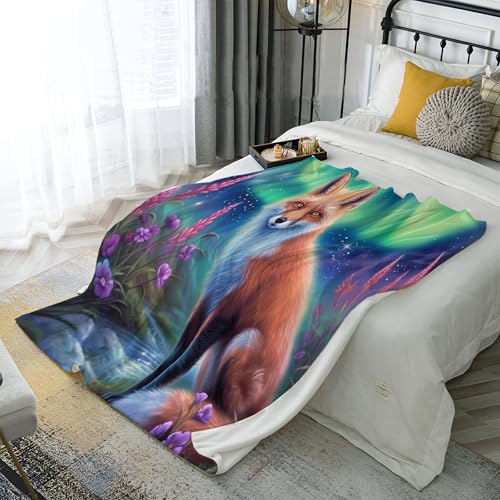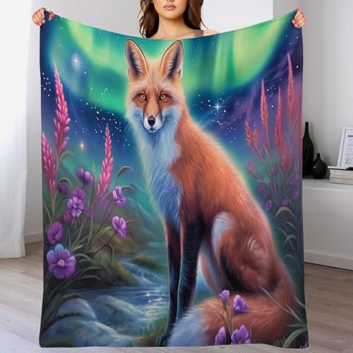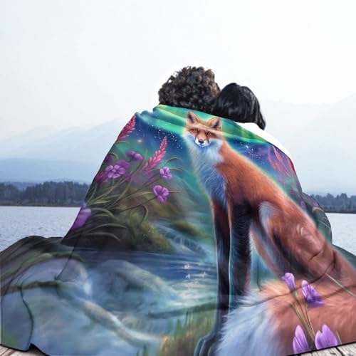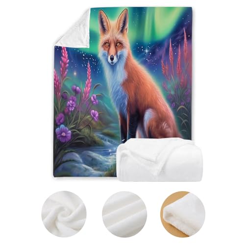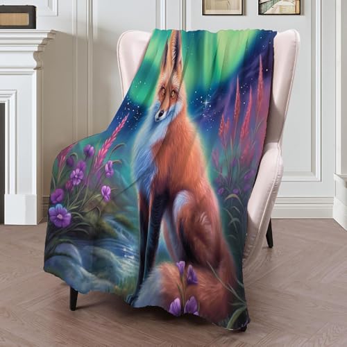 【Angenehm warm】: Wir haben unsere klassische Flanell-Fleecedecke verbessert, damit sie noch weicher gemütlich und hautsympathisch. jetzt mit verbesserter Mikrofaser. Edition mit Sternenhimmel Blumen Fuchs muster auf Oberseite, Rückseite in Weiß. Die exquisiten Farben verleihen dieser Decke ein eleganteres und eleganteres Aussehen und verleihen Ihrem Zimmer ein schickes Ambiente.