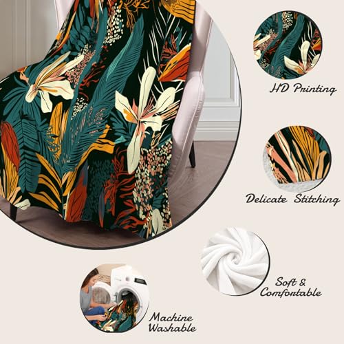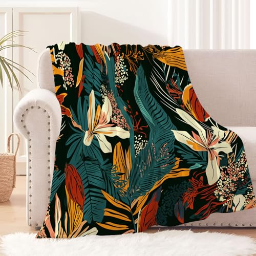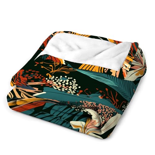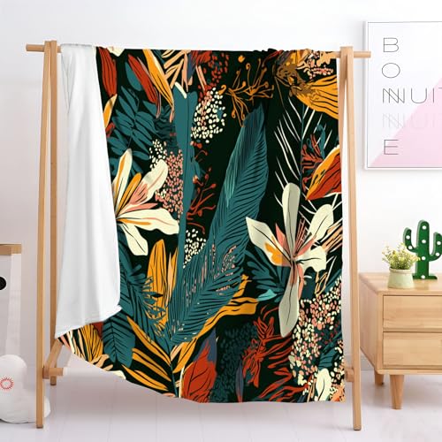 【Angenehm warm】: Wir haben unsere klassische Flanell-Fleecedecke verbessert, damit sie noch weicher gemütlich und hautsympathisch. jetzt mit verbesserter Mikrofaser. Abdruck mit 3D Tropisch Blumen muster auf Oberseite, Rückseite in Weiß. Die exquisiten Farben verleihen dieser Decke ein eleganteres und eleganteres Aussehen und verleihen Ihrem Zimmer ein schickes Ambiente.