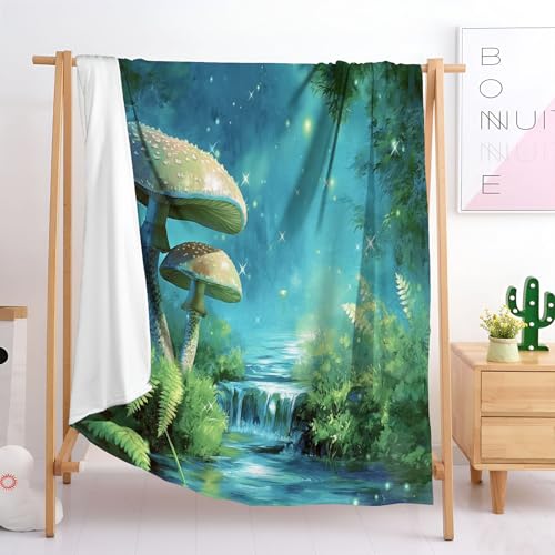 MIATCENRT Wald Pilze Bedruckt Kuscheldecke, Kinderdecke 3D Druck Ölgemälde Kunst Lauschige Plüsch Decke, Wohndecke Fleece Tagesdecke Decke TV Decken für Bett Sofa (200x220cm)