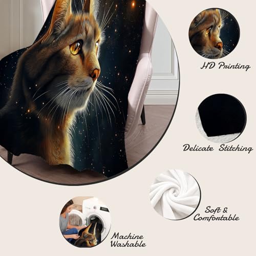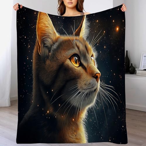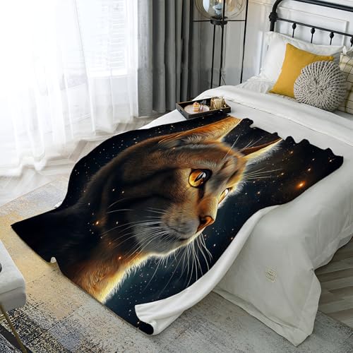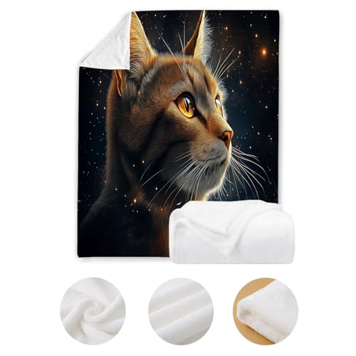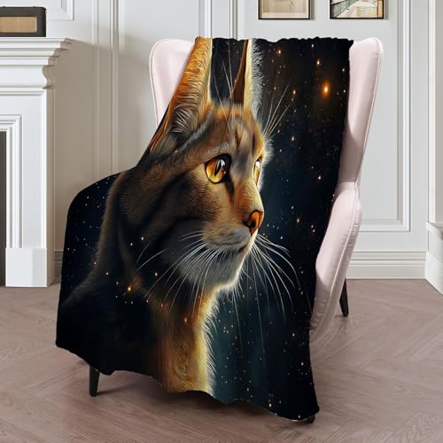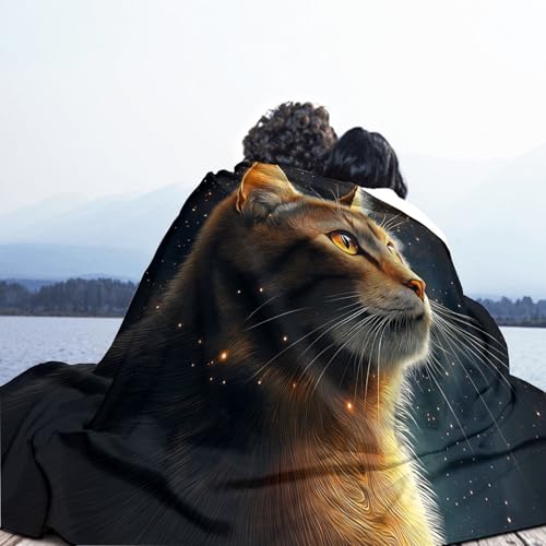 MIATCENRT Weltraum Katzen Bedruckt Flanell Decken, Kinderdecke 3D Druck Fantasy Kunst Flauschige Plüsch Decke, Taupe Wohndecke Fleece Tagesdecke Decke TV Decken für Bett Sofa 150x200cm