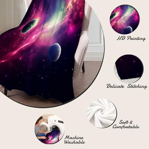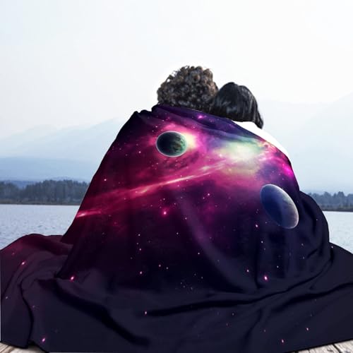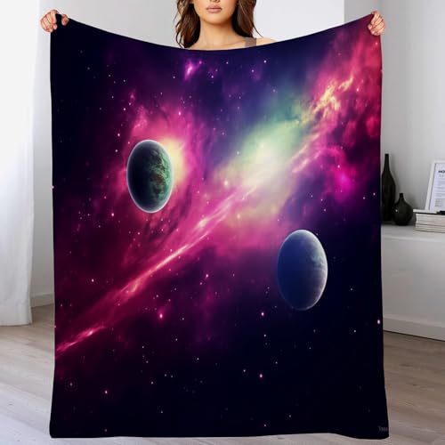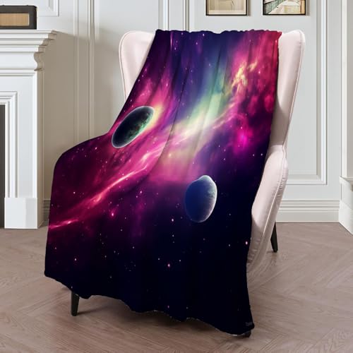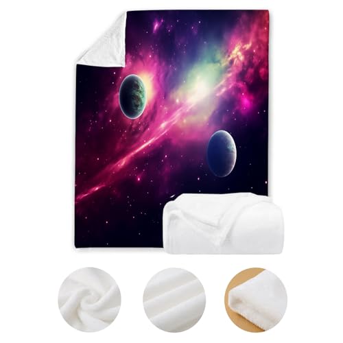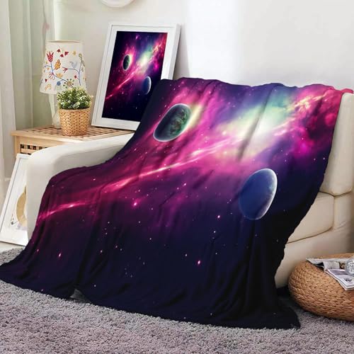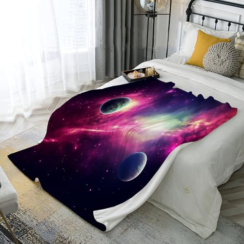 【Angenehm warm】: Wir haben unsere klassische Flanell-Fleecedecke verbessert, damit sie noch weicher gemütlich und hautsympathisch. jetzt mit verbesserter Mikrofaser. Auflage mit Weltraum Planeten muster auf Oberseite, Rückseite in Weiß. Die exquisiten Farben verleihen dieser Decke ein eleganteres und eleganteres Aussehen und verleihen Ihrem Zimmer ein schickes Ambiente.