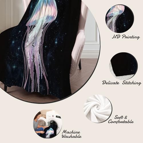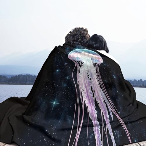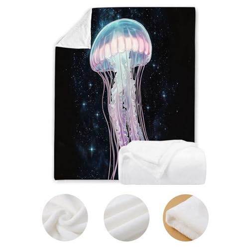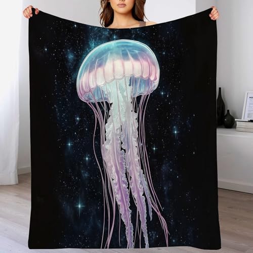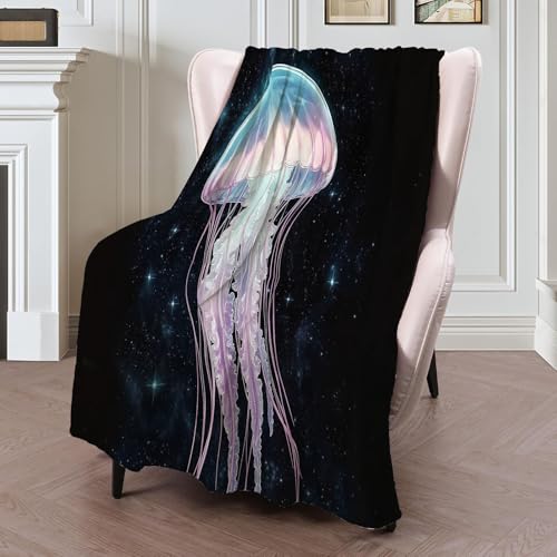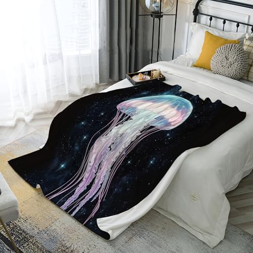 【Angenehm warm】: Wir haben unsere klassische Flanell-Fleecedecke verbessert, damit sie noch weicher gemütlich und hautsympathisch. jetzt mit verbesserter Mikrofaser. Publikation mit Weltraum Quallen muster auf Oberseite, Rückseite in Weiß. Die exquisiten Farben verleihen dieser Decke ein eleganteres und eleganteres Aussehen und verleihen Ihrem Zimmer ein schickes Ambiente.
