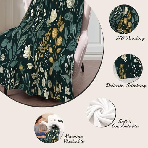 【Angenehm warm】: Wir haben unsere klassische Flanell-Fleecedecke verbessert, damit sie noch weicher gemütlich und hautsympathisch. jetzt mit verbesserter Mikrofaser. Ausgabe mit 3D Wildblumen Weinreben muster auf Oberseite, Rückseite in Weiß. Die exquisiten Farben verleihen dieser Decke ein eleganteres und eleganteres Aussehen und verleihen Ihrem Zimmer ein schickes Ambiente.