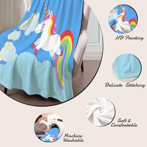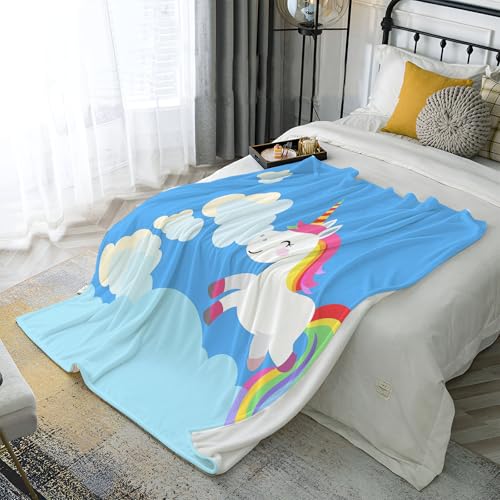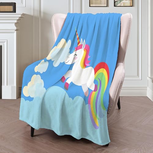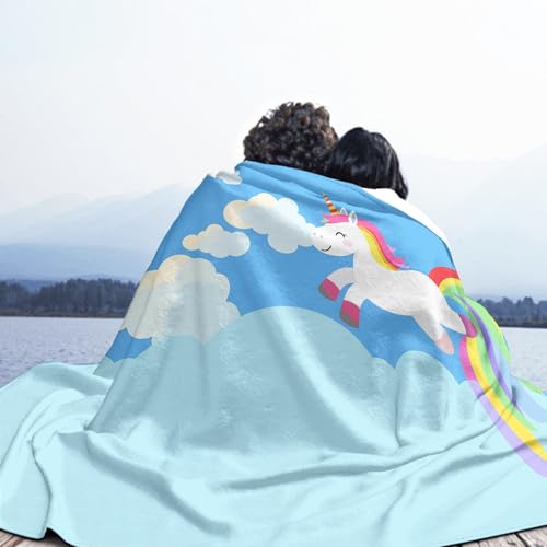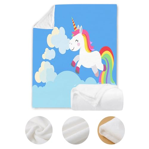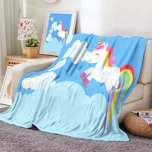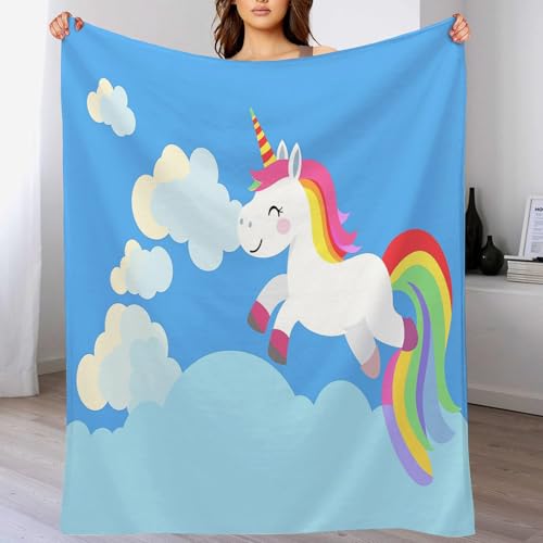 【Angenehm warm】: Wir haben unsere klassische Flanell-Fleecedecke verbessert, damit sie noch weicher gemütlich und hautsympathisch. jetzt mit verbesserter Mikrofaser. Abdruck mit Wolken Regenbogen Pferd muster auf Oberseite, Rückseite in Weiß. Die exquisiten Farben verleihen dieser Decke ein eleganteres und eleganteres Aussehen und verleihen Ihrem Zimmer ein schickes Ambiente.