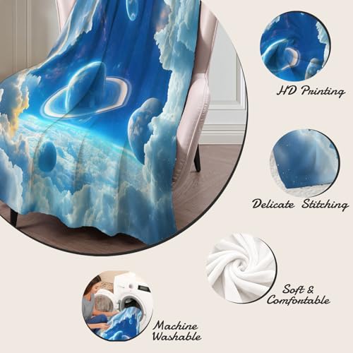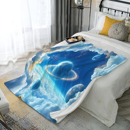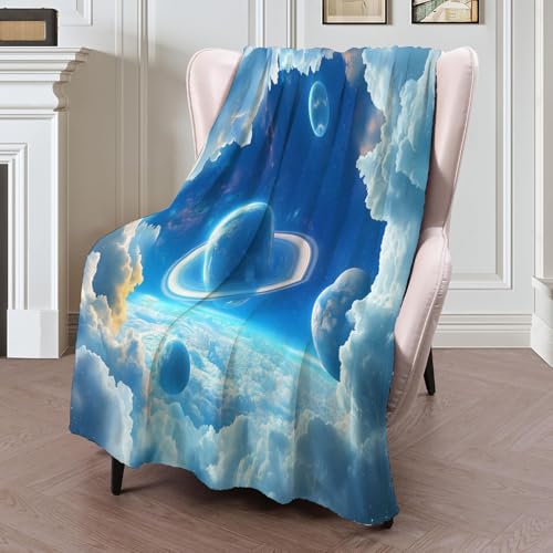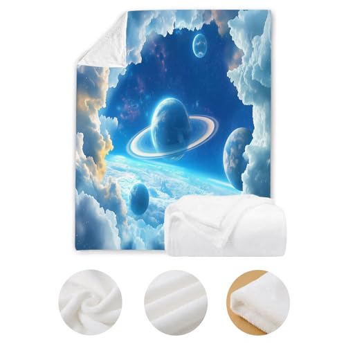 【Angenehm warm】: Wir haben unsere klassische Flanell-Fleecedecke verbessert, damit sie noch weicher gemütlich und hautsympathisch. jetzt mit verbesserter Mikrofaser. Vertiefung mit Wolken Satellit muster auf Oberseite, Rückseite in Weiß. Die exquisiten Farben verleihen dieser Decke ein eleganteres und eleganteres Aussehen und verleihen Ihrem Zimmer ein schickes Ambiente.