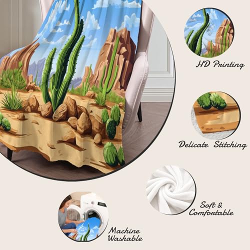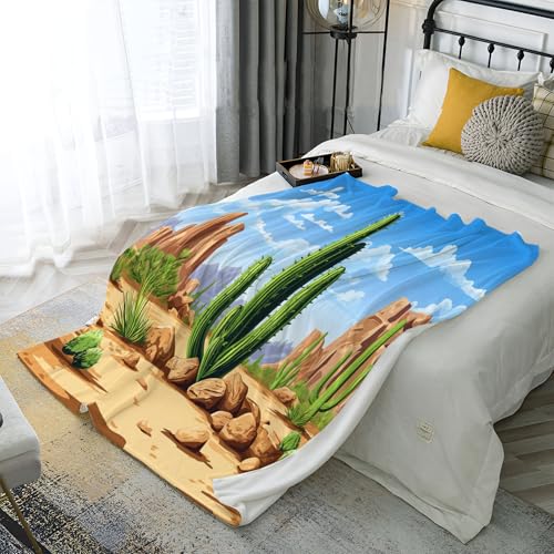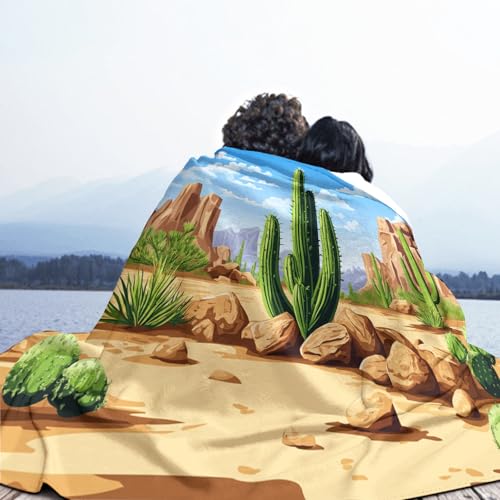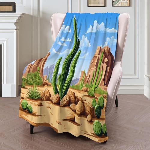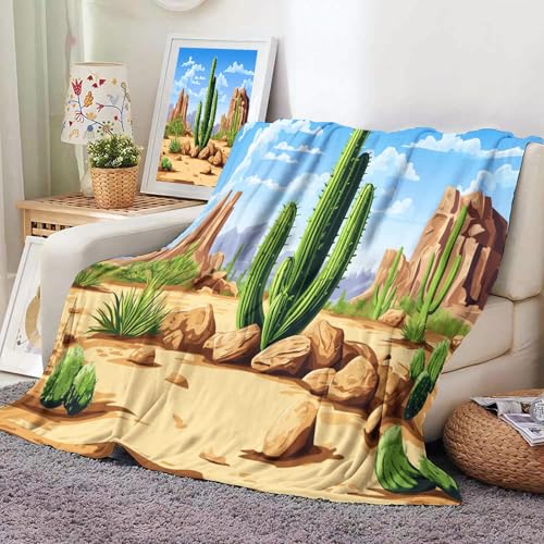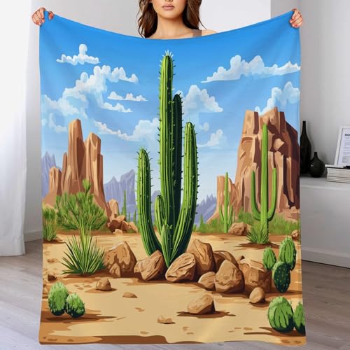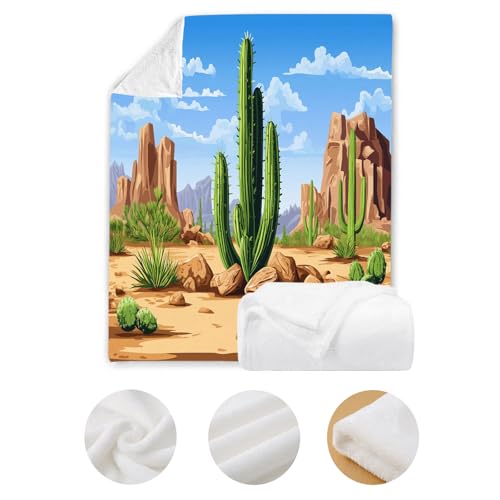 【Angenehm warm】: Wir haben unsere klassische Flanell-Fleecedecke verbessert, damit sie noch weicher gemütlich und hautsympathisch. jetzt mit verbesserter Mikrofaser. Vertiefung mit Wüstenkaktus-Cartoon-Landschaft muster auf Oberseite, Rückseite in Weiß. Die exquisiten Farben verleihen dieser Decke ein eleganteres und eleganteres Aussehen und verleihen Ihrem Zimmer ein schickes Ambiente.