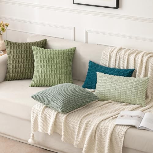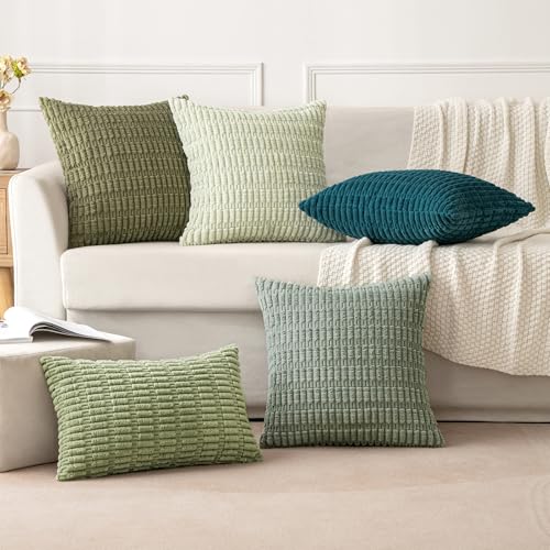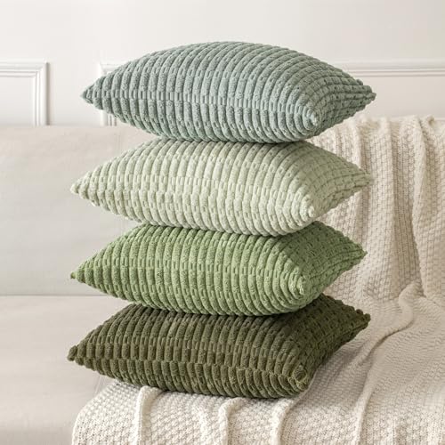 MIULEE 2er Set 40×40 cm Kordsamt Kissenbezüge Moderne Kissenhüllen Dekorative Sofakissen Dekokissen Weicher Zierkissenbezug für Wohnzimmer Sofa Schlafzimmer Boho Dekor Graugrün