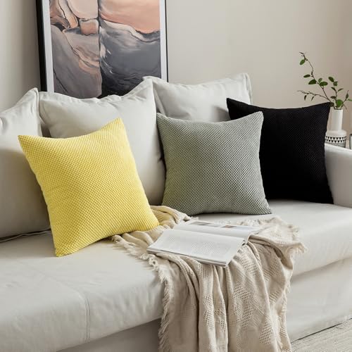MIULEE 2er Set Kissenbezüge Dekokissen Körnig Dekorativ Kissenbezug Kissenhülle Sofakissen Deko Bezug Weich Zierkissen Kissen für Wohnzimmer Schlafzimmer 50x50cm Zitronengelb