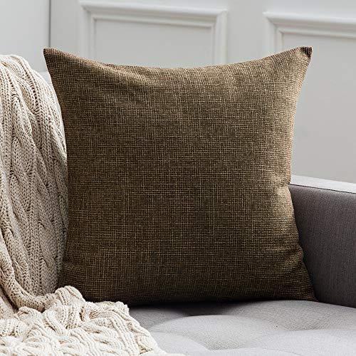 MIULEE 2er Set Kissenbezüge Kissenhülle Dekokissen Leinen-Optik Dekorative Kissenbezug Sofakissen Couchkissen Deko Kreuz mit Verstecktem Reißverschluss für Sofa Schlafzimmer 40×40 cm Dunkelbraun