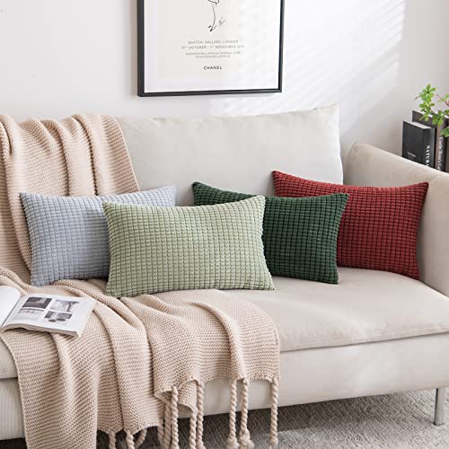 MIULEE 2er Set Kissenbezüge Kordsamt Dekokissen Kissenbezug Sofakissen Dekorativ Couchkissen Kissenhülle Bezug Weich für Wohnzimmer Schlafzimmer 30×50 cm Bohnengrün