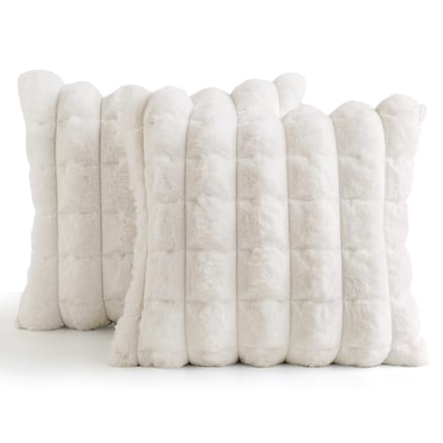 MIULEE 2er Set Kissenbezug 40×40 cm Weiß Kuschelkissen Künstlich Pelz Kissenbezüge Gitter Kissenhülle Weiche Dekokissen Dekorative Zierkissen Couchkissen für Wohnzimmer Schlafzimmer Kinderzimmer