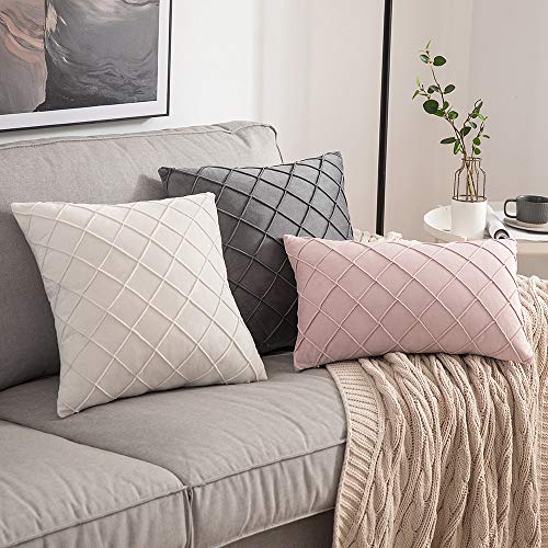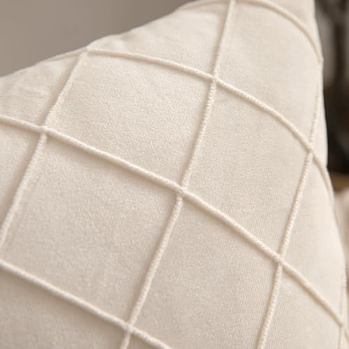 MIULEE 2er Set Samt Kissenbezug Gitter Sofakissen Dekokissen Kissenhülle Kissenbezüge Couchkissen Kissen Samtkissen Weich Einfarbig Zierkissen für Sofa Wohnzimmer 40×40 cm Milchweiß
