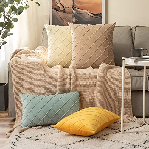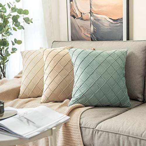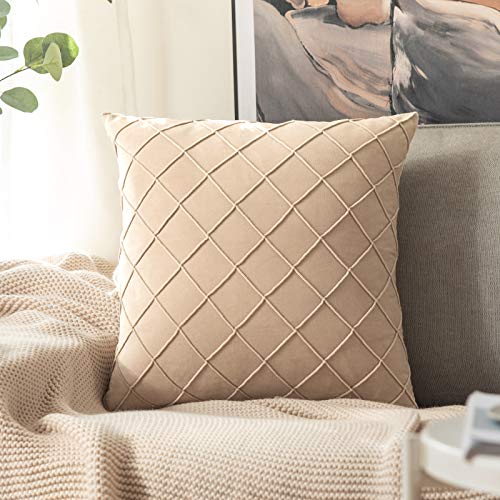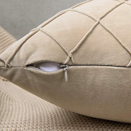 MIULEE 2er Set Samt Kissenbezug Gitter Sofakissen Dekokissen Kissenhülle Kissenbezüge Couchkissen Kissen Samtkissen Weich Einfarbig Zierkissen ohne Füllung für Sofa Wohnzimmer 40x40cm Champagner