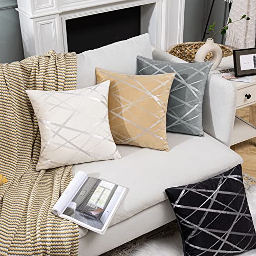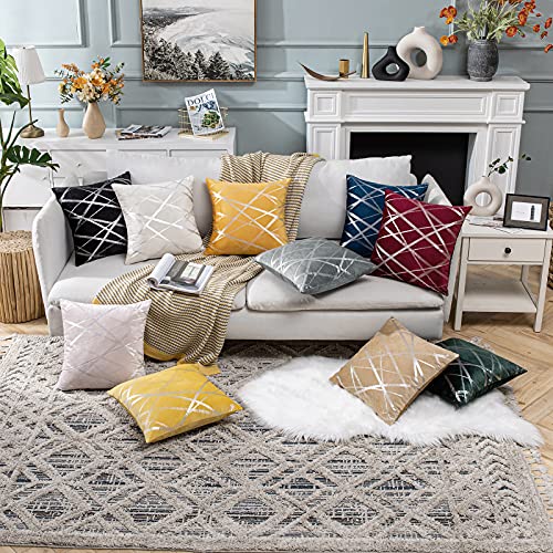 MIULEE 2er Set Samt Kissenbezug Silver Kissenbezüge Dekokissen Dekorativ Sofakissen Kissenhülle Zierkissenbezug Zierkissen Bezug Überzug Deko Kissen Bezüge Couchkissen Sofa Schwarz 50×50 cm