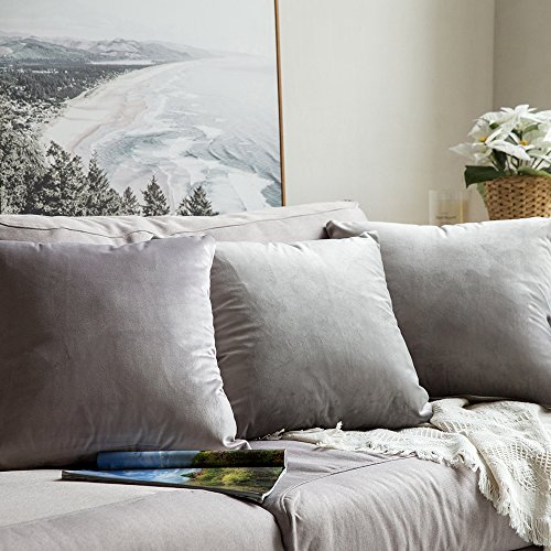MIULEE 2er Set Samt Zierkissenbezug ohne Füllung-Zierkissenhülle Dekorative Kissenbezug Dekokissen Kissenhülle mit Verstecktem Reißverschluss Grau 20×20 Zoll 50 x 50 cm