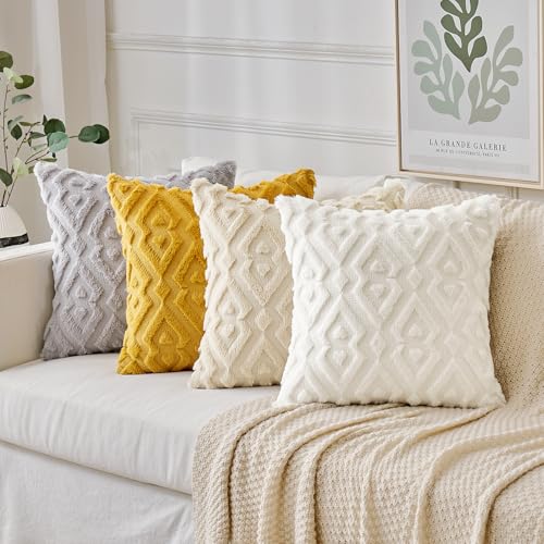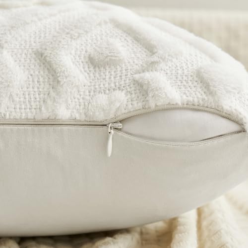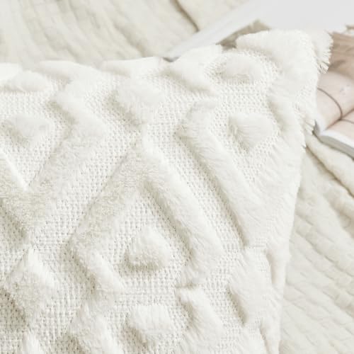 MIULEE 2er Set Weihnachten Wolle Kissenbezüge Weicher Dekokissen Plüsch Kissenbezug Boho Deko Kissen Sofa Aesthetic Geometrische Sofakissen Zierkissenbezug für Schlafzimmer Cremeweiß 50x50cm