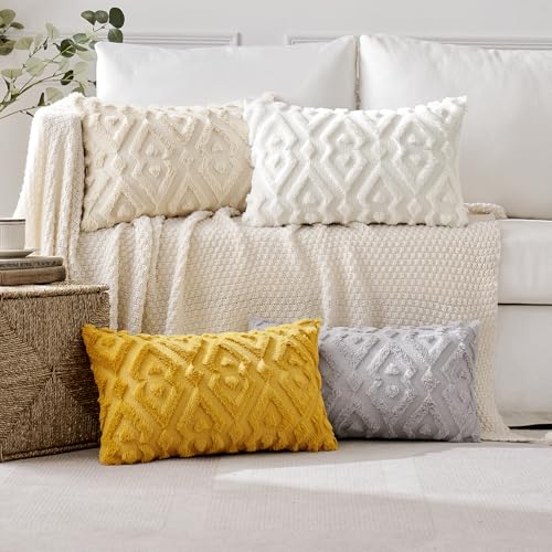 MIULEE 2er Set Wolle Kissenbezüge Weicher Dekokissen Plüsch Kissenbezug Boho Deko Kissen Sofa Aesthetic Geometrische Sofakissen Polyster Zierkissenbezug für Wohnzimmer Schlafzimmer Senfgelb 40x60cm