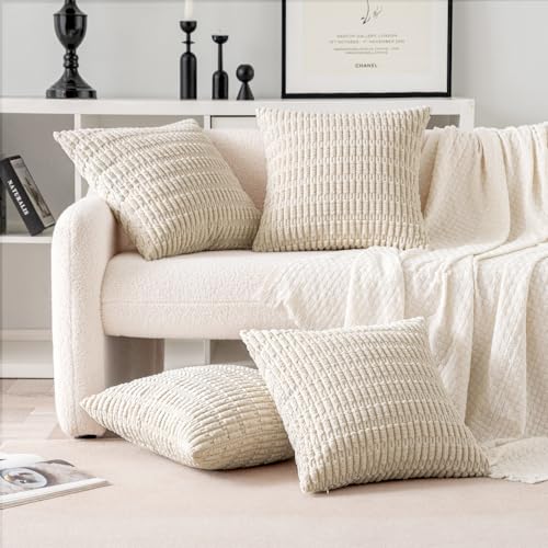 MIULEE 4er Set 40×40 cm Kordsamt Kissenbezüge Moderne Kissenhüllen Dekorative Sofakissen Dekokissen Weicher Zierkissenbezug für Wohnzimmer Sofa Schlafzimmer Boho Dekor Beige