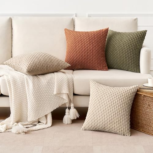 MIULEE 4er Set Kordsamt Kissenbezüge Kissenbezug Dekorative Kissenhülle Moderne Sofakissen Kissen Zierkissen Couchkissen für Sofa Dekokissen Wohnzimmer Schlafzimmer 40×40 cm Braun Grün Serie