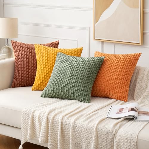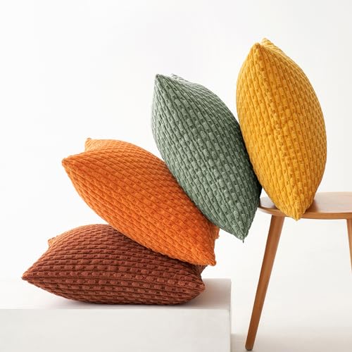 MIULEE 4er Set Kordsamt Kissenbezüge Kissenbezug Dekorative Kissenhülle Moderne Sofakissen Kissen Zierkissen Couchkissen für Sofa Dekokissen Wohnzimmer Schlafzimmer 40×40 cm Orange Grün Serie