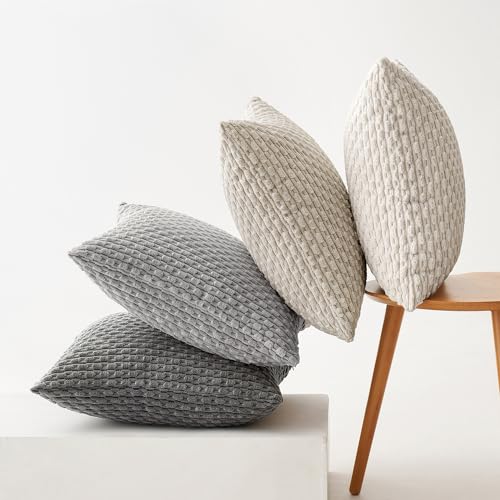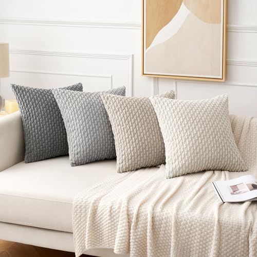 MIULEE 4er Set Kordsamt Kissenbezüge Kissenbezug Dekorative Kissenhülle Moderne Sofakissen Kissen Zierkissen Couchkissen für Sofa Dekokissen Wohnzimmer Schlafzimmer 50×50 cm Grau Serie